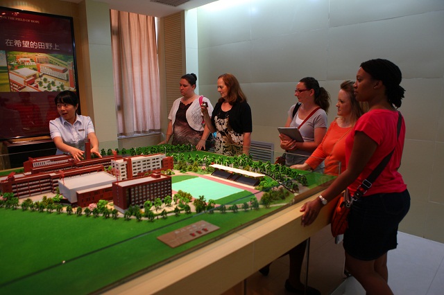 访问团的老师在我校外事干事孙晓珍老师的带领下参观了学校的校园文化建设,包括校展室、报告厅、心理咨询室、体育馆和图书馆等。所到之处,来访教师对我校为学生营造的校园文化的点点滴滴赞不绝口, 尤其感叹于我校在关注学生心理健康方面所作的努力。