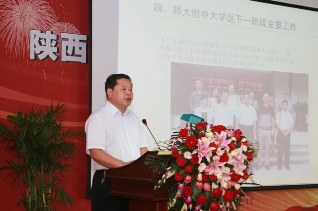陕师大附中校长 边团结就大学区的工作开展情况做总结汇报