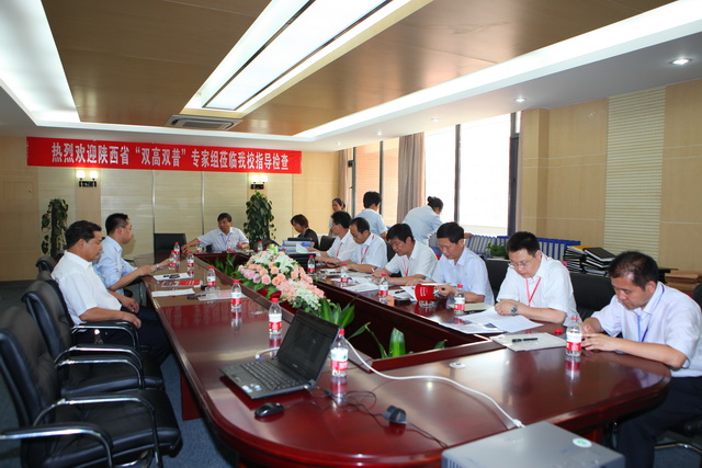 检查组听取我校领导“双高双普”的汇报并查看资料