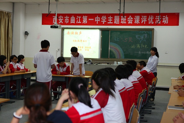 后记:此次主题班会,充分体现了我校教师精湛的业务素质和我校学生积极向上的精神面貌。参加此次主题班会的四位班主任老师准备充分、形式多样。通过生动的案例、优美的音乐、精致和课件和那富有哲理的言语,让在场的各位评委和参加观摩学习的各位老师赞不绝口。通过此次班会,让我们的学生对自己的同学、对自己的老师、对自己的父母,甚至对于自己都有了一个深刻的认识。每个主题班会的时间只有短短的45分钟,但这短短的45分钟可能会对我们学生的一生产生深远的影响!