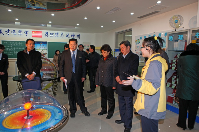 最后,领导们来到地理专用教室,高一(2)班詹婧琳同学简要汇报了地理沙龙兴趣小组的活动内容,介绍并演示了地理专用教室的各种设施,赢得了各位领导的一致好评。