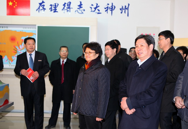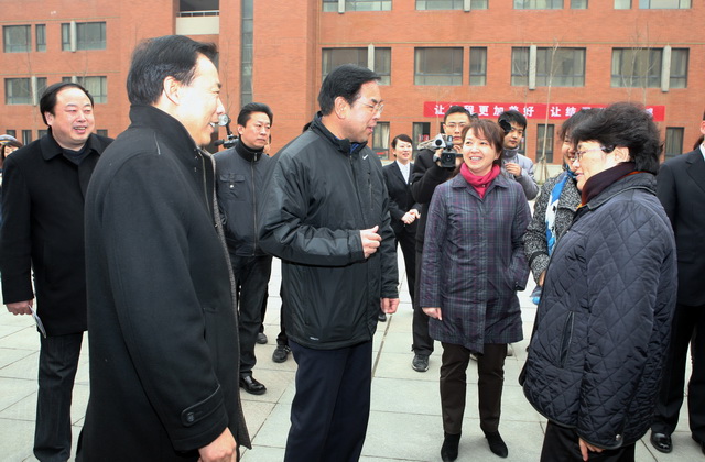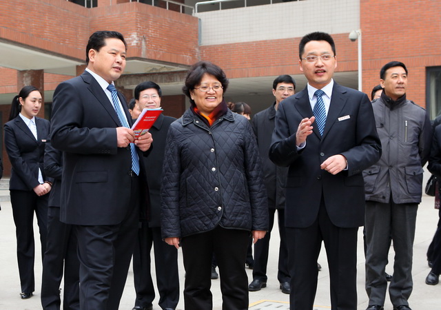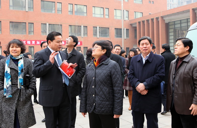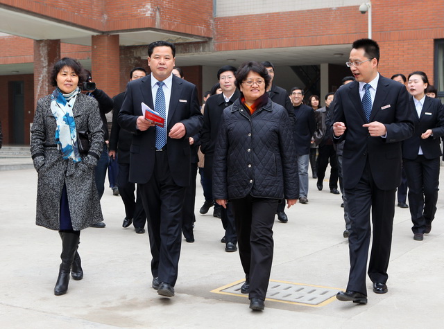 陕西师范大学校长房喻、副校长张建祥、曲江新区管委会副主任寇雅玲、曲江新区管委会教育卫生局局长郭军、陕西师范大学校办主任卢胜利、产业处处长刘锋与我校校长边团结、常务副校长陈勇刚等一起迎接李卫红副部长一行的检查调研活动。