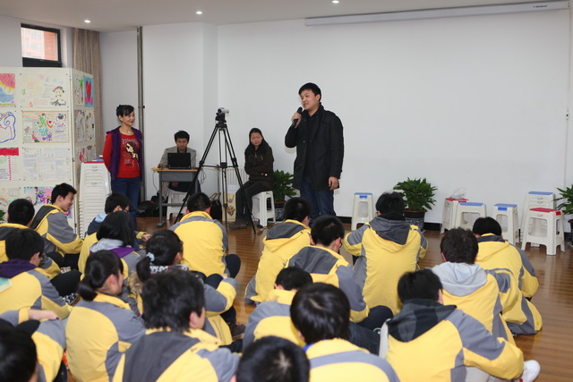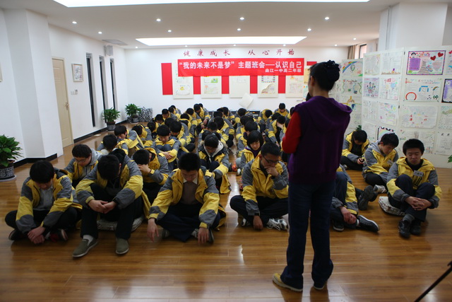 刚刚领悟了“进化论”的深意,老师便带领大家进入下一环节:先让同学们仅仅漫无目的地走着,而不要有所交流,然后慢慢眼神接触,最后再到语言交流。活动开始,同学们虽不言语,但是行动时却大多聚集在一起,可以用眼神交流后,相互熟络的同学们脸上渐渐有了笑容,再到语言交流时,人群中便有了热烈的讨论声。从这一活动中,同学们能看到自身所存在的诸多问题,如无法脱离人群,难以独立,没有自我空间。这样的结果让大家更加意识到重新面对自己、审视自己的重要性。淡远轻渺的音乐声里,随着老师的引导,同学们闭上双眼,在冥想中重塑自我。在平淡、宁静气氛的触动下,同学们心有所动,纷纷吐露心声。