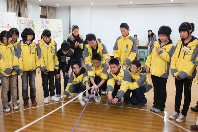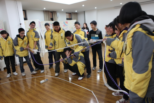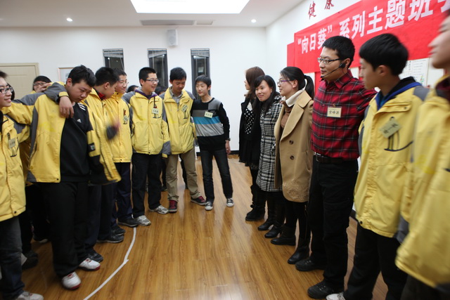 之后,老师又带领大家玩了一个“我们是最棒的”游戏。游戏中,同学们尽情释放自己,热情四溢,露出了学业压力之下久违的笑容。
