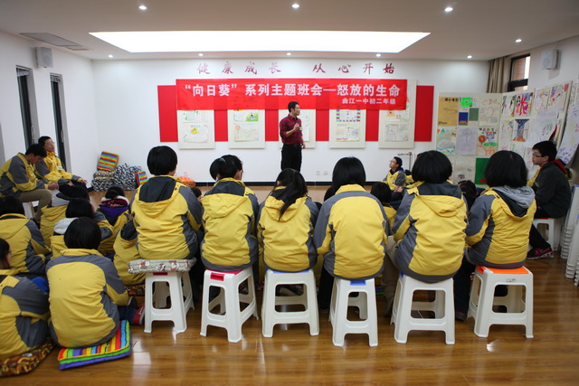 3月21日下午第三四节课,初二·二班同学们在心理活动室开展了第二次“向日葵”系列主题班会。本次班会的主持人老师用
