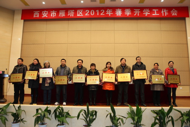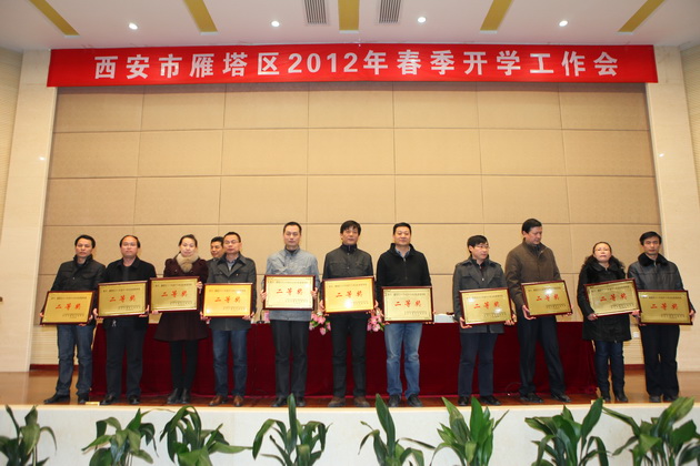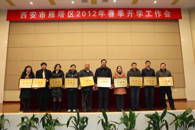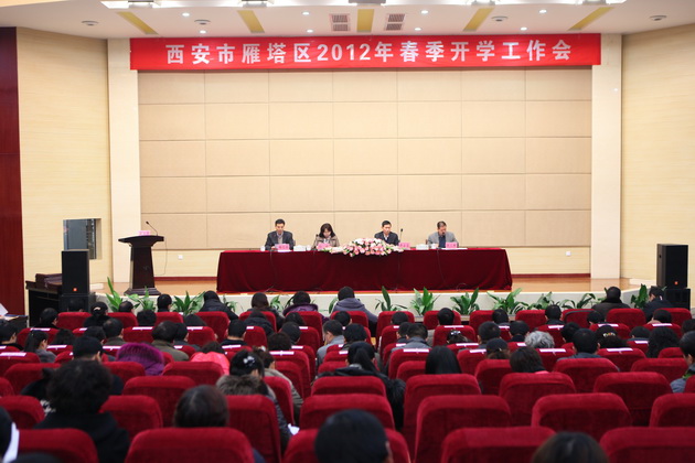2月3日上午,雁塔区2012年春季开学工作会议在我校隆重召开。教育局局长李占良、教育局党委书记孙娥、副局长谢志林、徐三雄等领导莅临我校主持会议。全区100多所中小学、职教及幼儿园的校长出席了会议。