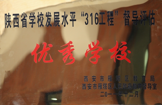 按照《西安市雁塔区教育局西安市雁塔区人民政府教育督导室关于表彰2011年学校发展水平“316工程”督导评估优秀学校的决定》的文件精神,我校喜获陕西省学校发展水平“316工程”督导评估优秀学校。