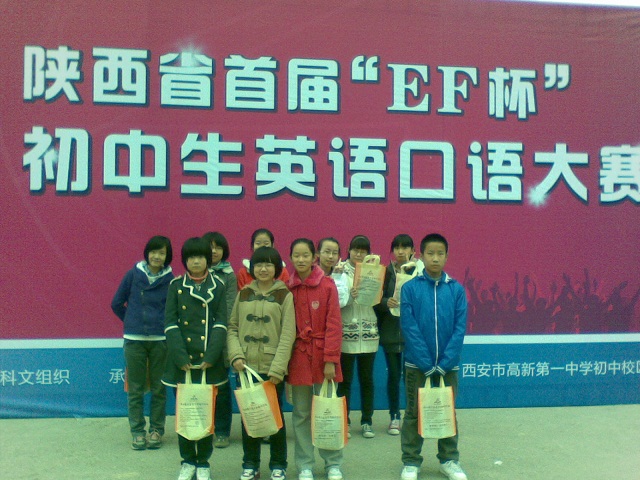 11月12日早上7:50,我校初二年级的10位同学:一班朱少坤、邹屹珂,二班曹卓冉、田韵欣、白蕴琦、郭子暄、王艺筝,三班吴娇娇,六班张若辰,八班陈思瑶,在樊青、杨鹏两位老师的带领下,与师大附中的老师同学们一起前往高新一中本部参加第一届英孚中学生口语大赛初赛。