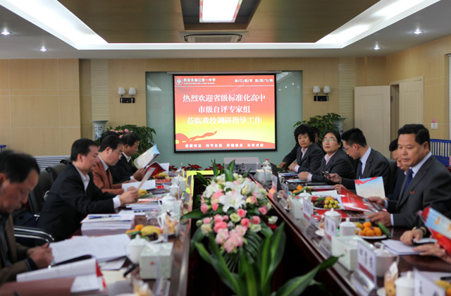 2011年10月28日下午,省级标准化高中市级自评专家组一行九人,在西安市教育局基教二处处长张瑞的带领下,对我校创建省级标准化高中进行了评估验收。西安市教育局基教处调研员赵晓民、西安市教科所副所长安保仁、西安市第一中学校长史建奎、西安市车辆厂中学校长袁涛、西北大学附中副校长祁银锁等专家参加了验收工作。雁塔区教育局局长李占良、副局长徐三雄、雁塔区教育局基教科科长杨振龙、曲江新区管委会教育卫生局郭军局长陪同验收。我校中层以上领导全程陪同。