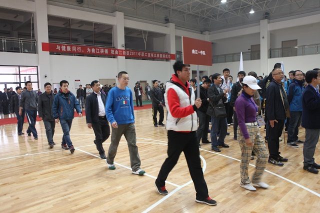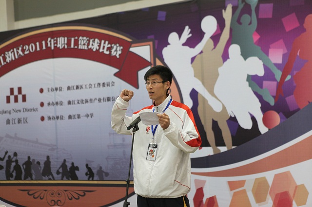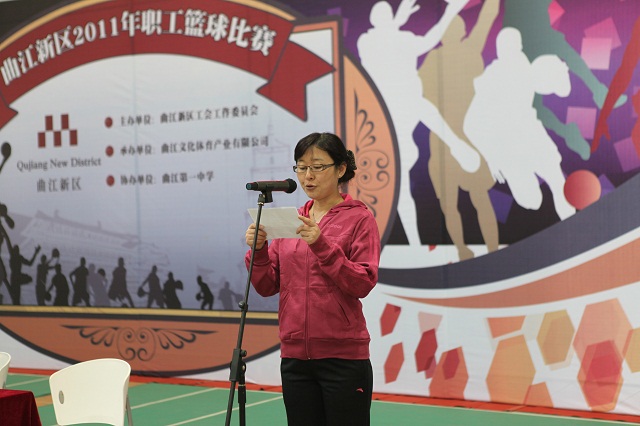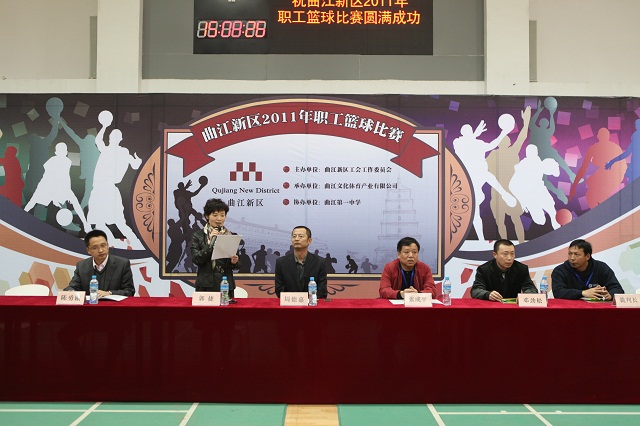 10月31日下午,由曲江新区工会工作管委会主办,曲江文化体育产业有限公司承办,曲江第一中学协办的2011曲江新区职工篮球比赛在曲江第一中学综合楼篮球馆内开幕。曲江文化产业投资集团副总经理周德嘉、西安市工商局曲江分局局长张成平、曲江新区管委会党办主任郭捷、曲江文化体育产业公司总经理邓劲松、曲江第一中学常务副校长陈勇刚等领导出席了开幕式。