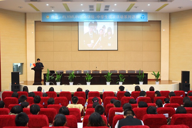 2011年11月6日下午两点,我校全体模联成员携各大名校的模联精英在我校报告厅举行了曲青 FLYMUN领袖讲坛——中学生模联活动系列讲座。我校校办兼政教主任余爱东和高一年级组长彭鸿莹出席了此次会议。