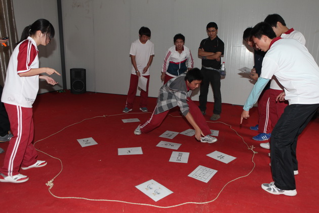 十一点半,上午的拓展训练在大家激动而开心的欢呼声中结束了,短暂的午休之后,大家都在期待着下午更为精彩的拓展训练。下午1点半,拓展项目准时开始——木屐行走和电网穿越,这次的挑战任务不仅要考虑到团队的合作意识还锻炼了大家的耐心。刚开始,有些分队没有掌握合作的技巧,尝试几次均以失败告终,但同学们仍然没有气馁,反而仔细讨论,认真研究,最终在共同协商合作下完成了任务。