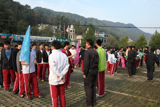 2011年9月24日清晨,在我校常务副校长陈勇刚老师、政教处主任余爱东老师、高二年级组长高秋棉老师、高二年级各班主任的带领下,全体高二年级学生怀着兴奋而好奇的心情踏上了素质拓展训练的征程。这是曲江一中特色教育的又一体现,旨在让学生们在实践中体验自然、磨砺意志,培养勇于进取和团结协作的精神。