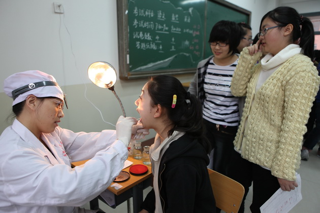 10月11 日——10月12日,雁塔区防疫站卫生所组织体检队为我校学生进行了体检。11日早晨,在体检队员的精心安排下,学生开始有序地进行体检。这次的体检内容很全面,除了有量血压、身高、体重等外,还有上臂围、下臂围、上下肢长等局部身体测量,对学生的身体发育状况更全面地了解。