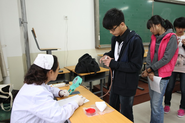 每一位负责体检测量的队员都尽心尽责,耐心地对每一位被测量的同学进行指导、纠正,让学生都能按照正确的步骤去测量。