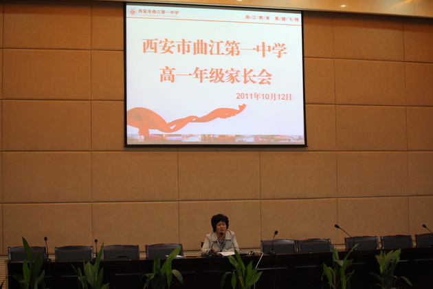 随后,高一年级组长彭鸿莹老师向各位家长介绍了自开学以来高一学生的整体情况。彭老师从学习、常规管理、仪容仪表、手机问题、社团问题等各个方面,非常全面的向各位家长汇报了自开学以来的各相工作。就高一年级第一次月考成绩向各位家长做了细致的分析,并对优秀班干部、年级前15名,以及单科前3名的学生进行了相应的表彰。最后彭老师希望各位家长要相信我们,配合我们,我们唯一的目标就是让我们的学生在曲江一中学有所获、学有所长、成人成才、快乐成长。