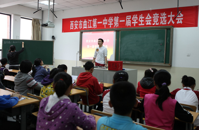 金秋十月,清风送爽,西安市曲江第一中学经过了一年多的茁壮成长,于2011年10月份开始了我校学生会的组建活动。该活动受到了我校师生的极大关注。
