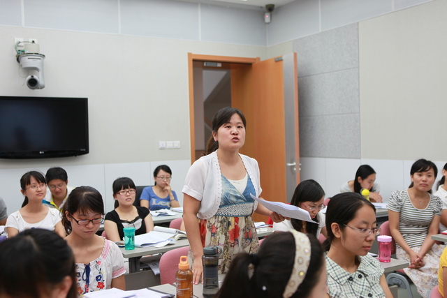 上午时光,衣新发老师在总结第一天所学的铺垫下,开启反思课堂。衣老师以“花木兰”一课的课堂实例作为切入点,展开分组讨论,探索优选方案。各位老师众说纷纭,提出了基于课程论以及反思理念的种种想法。在此基础上,衣老师进而展开了一系列训练思维的题目供大家讨论学习。最后按照反思六步法的模式,全体老师共同参阅了反思实验室里的反思课例,关于反思训练的专题在中午时分圆满结束。