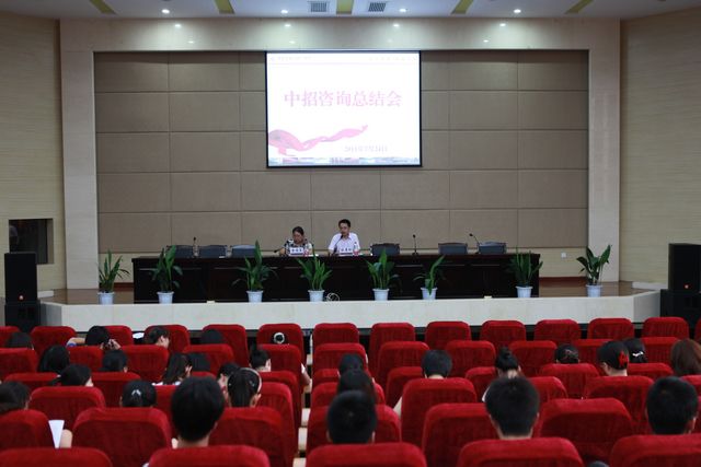 为了能给广大考生和家长提供一个与学校沟通交流的平台,也为了能使广大考生和家长对学校的教学环境、办学特色及2011年学校招生政策等方面的情况有较详细的了解,学校于2011年7月19日——7月23日举行了中招咨询暨校园开放日活动。活动圆满结束后, 7月24日上午在学校报告厅举行了中招咨询总结会。会议由陈校长主持,参加本次招生咨询活动的所有教职工参加了本次总结会。