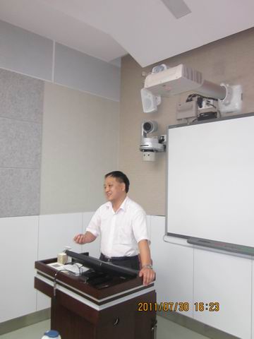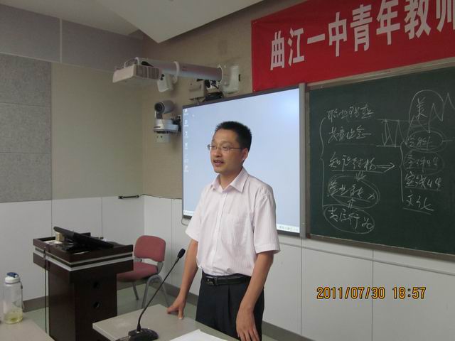 随后,这次培训的总负责人、培训中心的主任胡卫平主任进行了总结发言。胡主任给予了曲江一中教师以高度评价,他认为曲江一中的受训教师素质较高、态度认真,收获也比较大。在发言中,他从当前教育的大形势出发,认为作为一名优秀的教师,必须从职业理想、教育理念、知识结构、教学能力、教学行为五个方面提升自己。而在自我素质的提高过程中,教师又必须注重自我主动、多元互动、向专家学习这三方面。胡主任对曲江一中的教师提出了殷切希望,希望每一位受训的教师都能成为学习型、思维型、创造型的优秀教师。