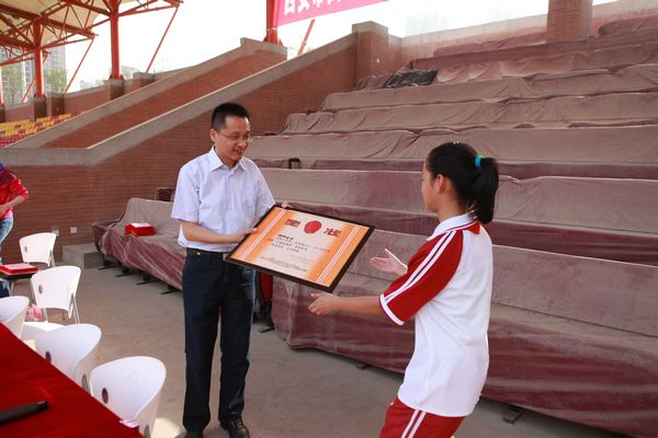 最后,余主任宣布了我校获得市级三好学生、西安市电脑制作活动获奖学生、区级先进班集体、校级优秀团员、校级优秀少先队员名单以及我校第一届初中部足球联赛、第一届高中部混合篮球联赛获奖班级及个人名单。