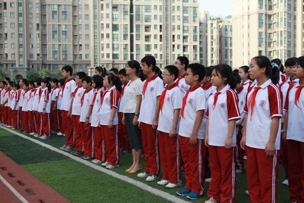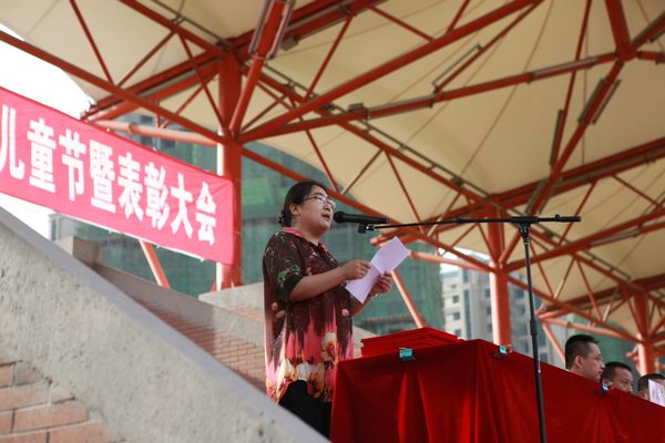 表彰大会在庄严的国歌声中拉开帷幕。陈校长首先向大会致辞。他祝福全体少先队员节日快乐,鼓励大家持节自强、乐学求新!