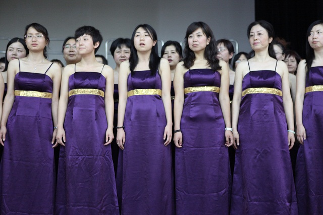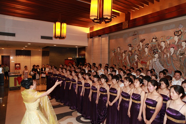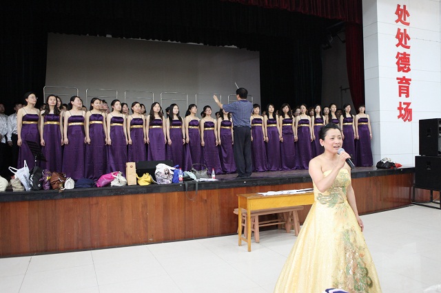 2011年6月9日。我校合唱团师统一着装,乘车来到大唐芙蓉园凤鸣九天剧院参加曲江新区纪念建党90周年“红歌会”大合唱比赛预选赛。我校老师演出了《江山》、《永世不忘》两首歌曲,老师们慷慨激昂的演唱,传递出了鲜明的时代精神和强烈的艺术震撼力。我校合唱团的精彩演唱获得评委一致好评,曲江第一中学顺利晋级。
