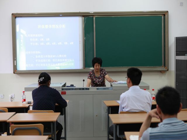 首先,常务副校长陈勇刚和教务主任朱琳瑛分别对高一年级、七年级期中考试成绩从班级整体情况、各学科情况进行分析,并用一系列准确、翔实的数据,对考试成绩作了横向、纵向的比较分析,对学生的学习现状、教师在教学中存在的问题都一一进行了剖析,分析结果说明高一年级及七年级各班级成绩并无显著差异。朱老师指出,教师要合理分配学生各学科的学习时间,调动学生学习的主动性和积极性,发挥集团作战、集体备课的优势,随时与附中教师在教学上进行研究、分析、探讨、交流和反思。各任课教师通过成绩分析找差距、找问题,关注自己的教育教学对象,对每个学生的整体情况、各科成绩做到心中有数,想方设法努力提高学生成绩。