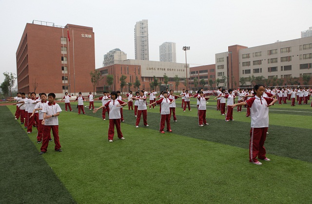 为了展现曲江一中学子青春飞扬、激情四射的良好精神风貌,增强同学们锻炼身体的意识和班集体荣誉感,进一步促进和谐校园的发展,迎接世园会,争做文明小市民,西安市曲江一中于2011年5月11日,在学校操场举办了初一、高一两个年级的首届广播操比赛。比赛上午七点半正式开锣,一个个整齐的方阵,一阵阵嘹亮的口号,形成了校园又一道美丽的风景线。