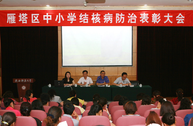 5月17日上午,在陕西师范大学学术活动中心召开了雁塔区中小学结核病防治表彰大会,来自雁塔区各中小学、幼儿园的主管校长、园长及校医参加了会议。