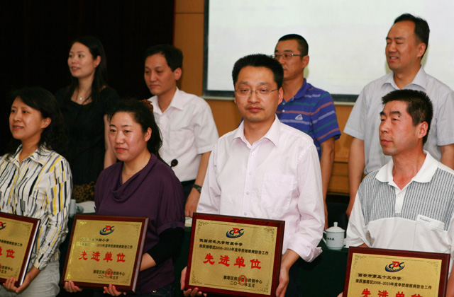 雁塔区疾病防控中心杜天麟主任宣读了雁塔区2008--2010年度学校结核病防治工作先进单位名单及先进个人名单。师大附中荣获雁塔区2010—2011年度学校结核病防治工作先进单位,我校常务副校长兼附中党委副书记陈勇刚上台领奖。会后,我校刘勇大夫参加了2011年学校结核病工作要点和防控工作的培训。
