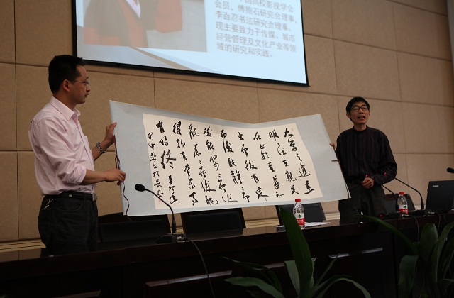 随后,王博士就我国现下礼教荒废,道德沦丧的社会现状提出以传统文化教化民众,正礼法、畅仁德、行大义。在谈及如何具体实现传统文化感亮现代生活时,王博士举出自身实例,如书本封面的DIY,用落笋替代绸绢的水墨作画,用磨盘自建茶海等。这些例子为学生提供了丰富的借鉴,也使传统文化的现代价值不再空泛。