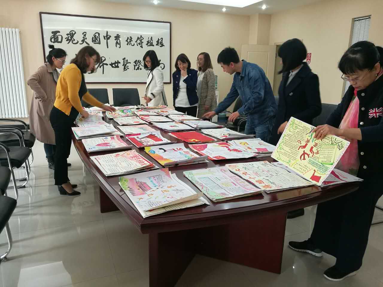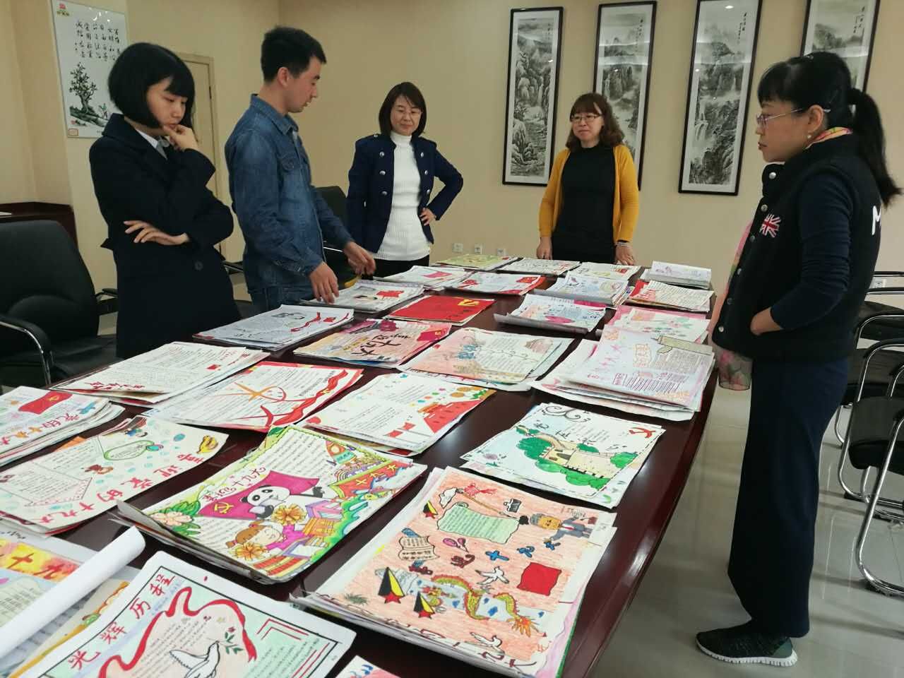 政教处主任刘瑜、教研室副主任罗红梅、政治教研组组长白国强及政治老师担任本次手抄报比赛评委