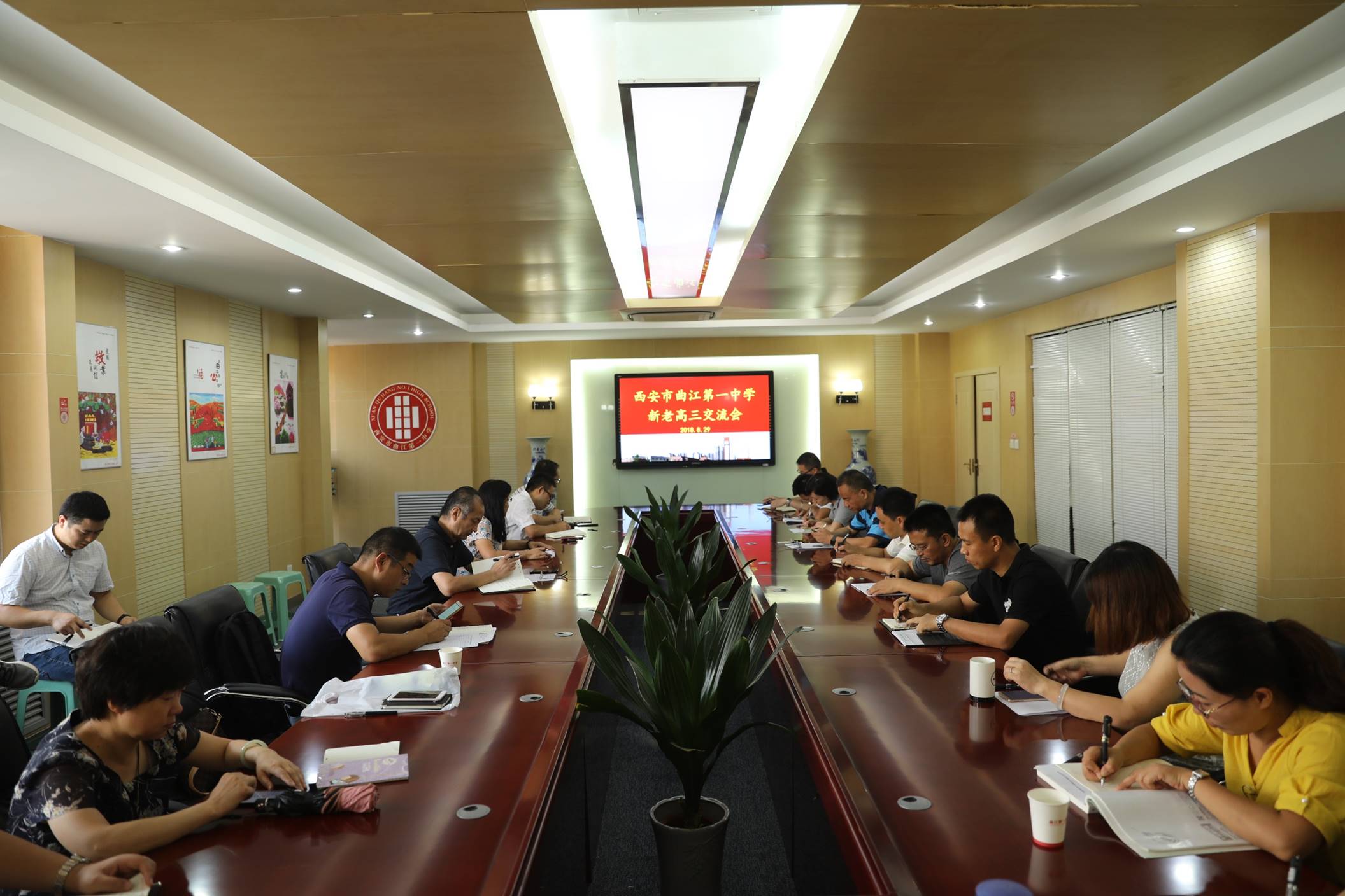 8月29日,西安市曲江第一中学一派新气象迎面而来。今天是教师返校准备开学的一天,开学工作大会、新老初、高三交流会、年级组会、教研组检查教案……这一组组镜头揭开了2018年秋季开学工作的序幕。经过一个暑假的休整,我们的校园、教师面貌都发生了新的变化,让我们伴随数码镜头,看看他们忙碌而充实的一天吧。
