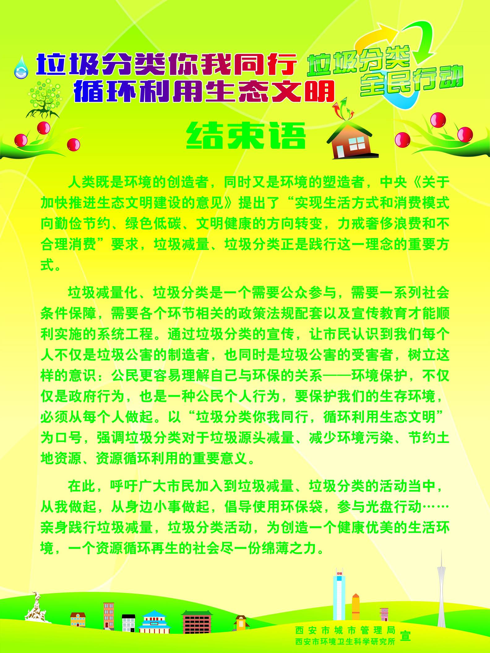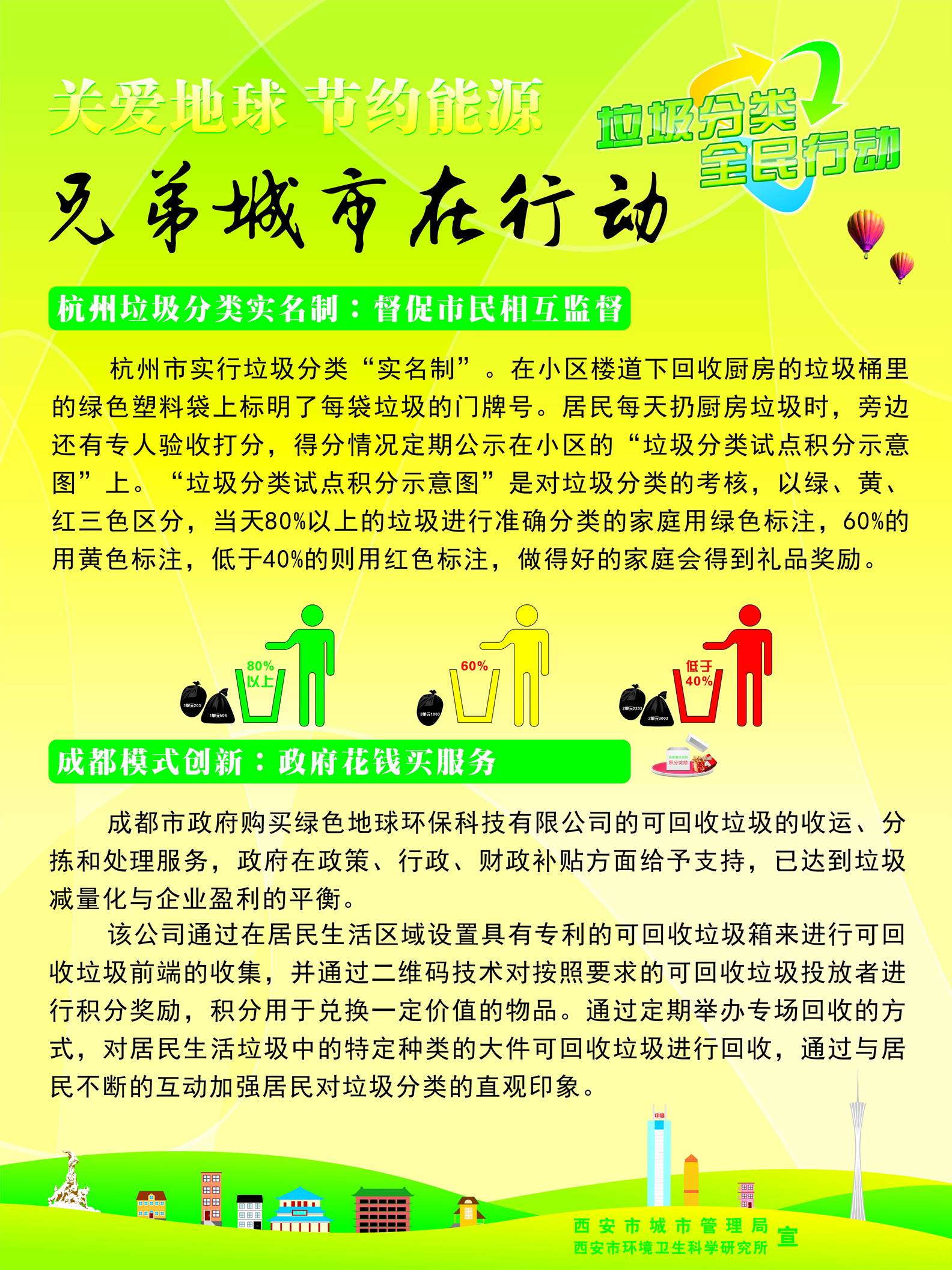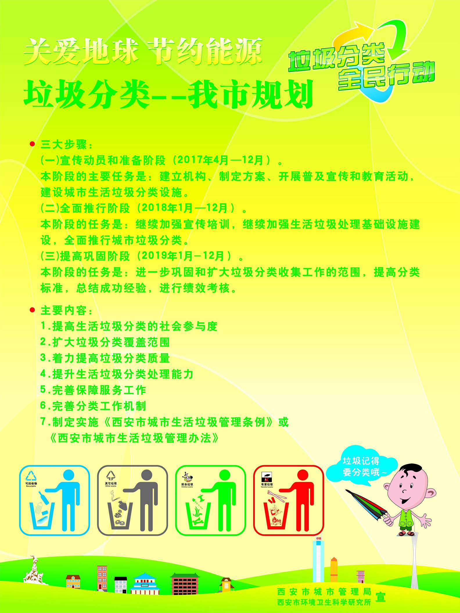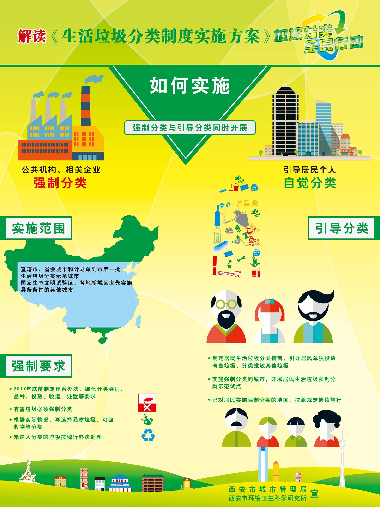 第九条市、区县人民政府、西咸新区管委会、开发区管委会应当加强生活垃圾分类的宣传工作,制定宣传方案,增强市民的生活垃圾分类意识,培养市民的分类习惯。镇人民政府、街道办事处应当按照宣传方案,做好辖区内的宣传工作。
