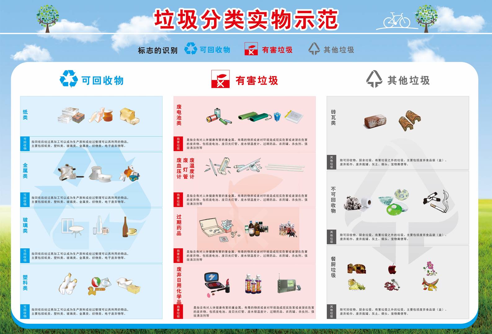 (一)可回收物,是指适宜回收和资源利用的物品,包括纸类、塑料、金属、玻璃和织物等;