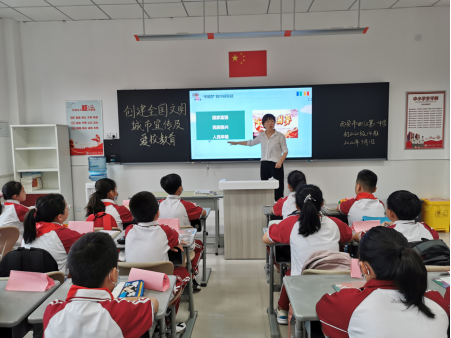 早上7:40,全校同学身着校服,有序进班。初一年级、高一年级各班召开“创建全国文明城市知识宣传、爱校教育主题班会”。通过主题班会活动,曲一学子了解“创文”知识、关爱城市家园。同学们参与到创文的行列中,共创“文明校园”,为创建文明城市添砖加瓦。同时,学校还利用主题班会对初一、高一年级学生进行爱校教育,让曲一新生了解校园活动和校园文化,尽快的融入到曲江一中的大家庭。