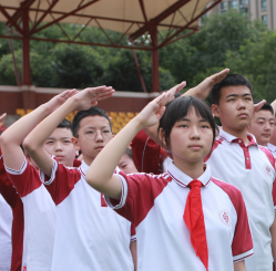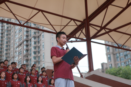 9点50分,曲江一中全校4000多师生在东校区操场上举行了2020年秋季学期第一周升旗仪式,在高三3班全体同学的国歌领唱下,全体师生行注目礼,少先队员行队礼,五星红旗冉冉升起。高三3班张嘉轩同学发表题为“新学期砥砺前行,同携手共铸辉煌”国旗下的讲话。他代表高三学生,向2020级的全体新生表示热烈欢迎!同时,他希望曲江一中的全体学子,面对新的学期,以“爱国明志,持节自强,厚德修身,乐学求新”的态度,扛起责任,背负梦想,创造出属于自己的辉煌成绩。最后由高三3班赵鼎同学领诵经典诵读文本《劝学》前三段、校训和社会主义核心价值观基本内容,嘹亮的诵读声响彻操场,豪迈的气势振奋人心。