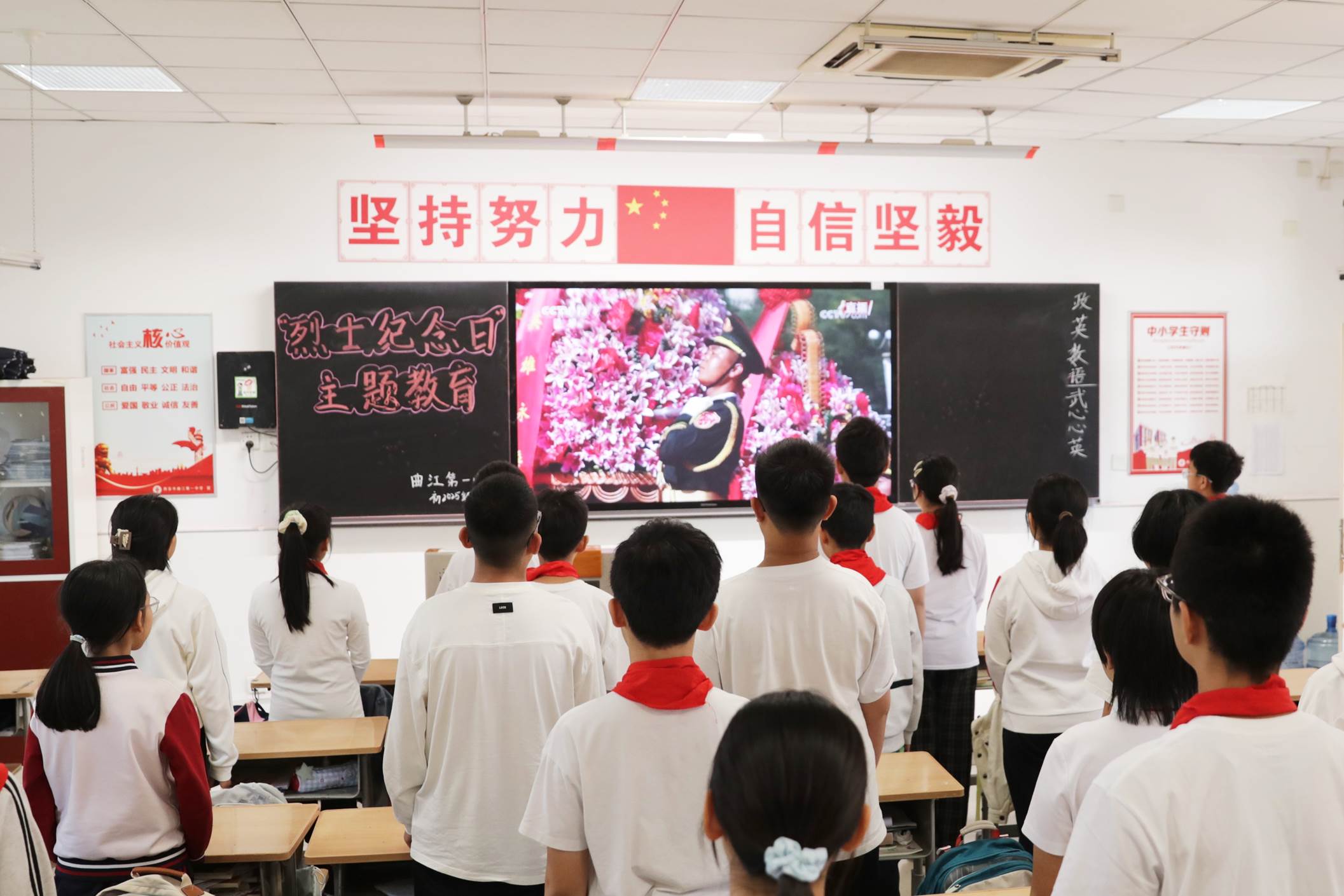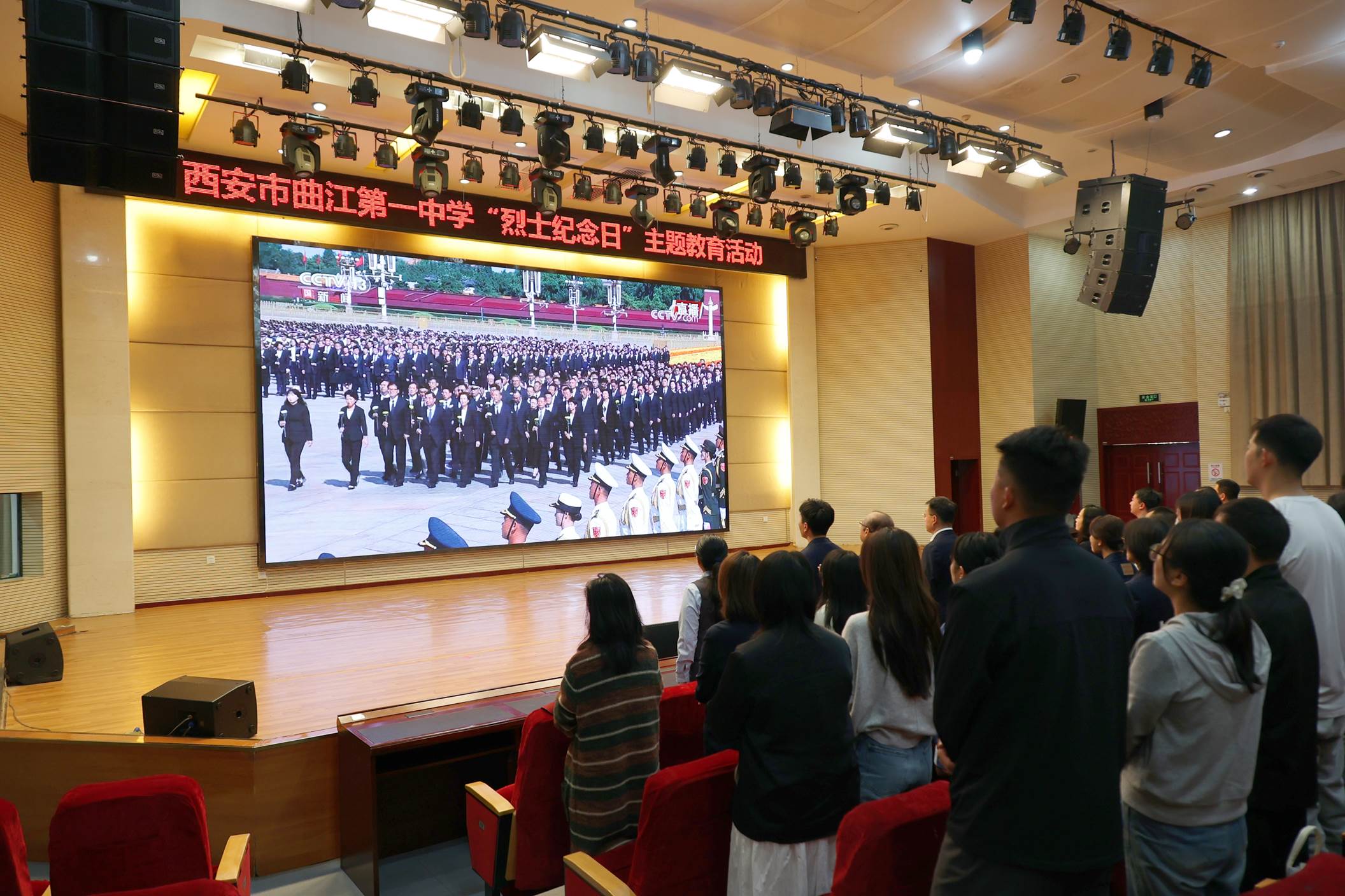 9月30日,烈士纪念日向人民英雄敬献花篮仪式在北京天安门广场隆重举行,西安市曲江第一中学组织全校师生开展“烈士纪念日”主题教育活动。上午10时整,全校师生分别在润德厅及各班教室收看烈士纪念日向人民英雄敬献花篮仪式现场直播,一同缅怀英烈、致敬英魂。