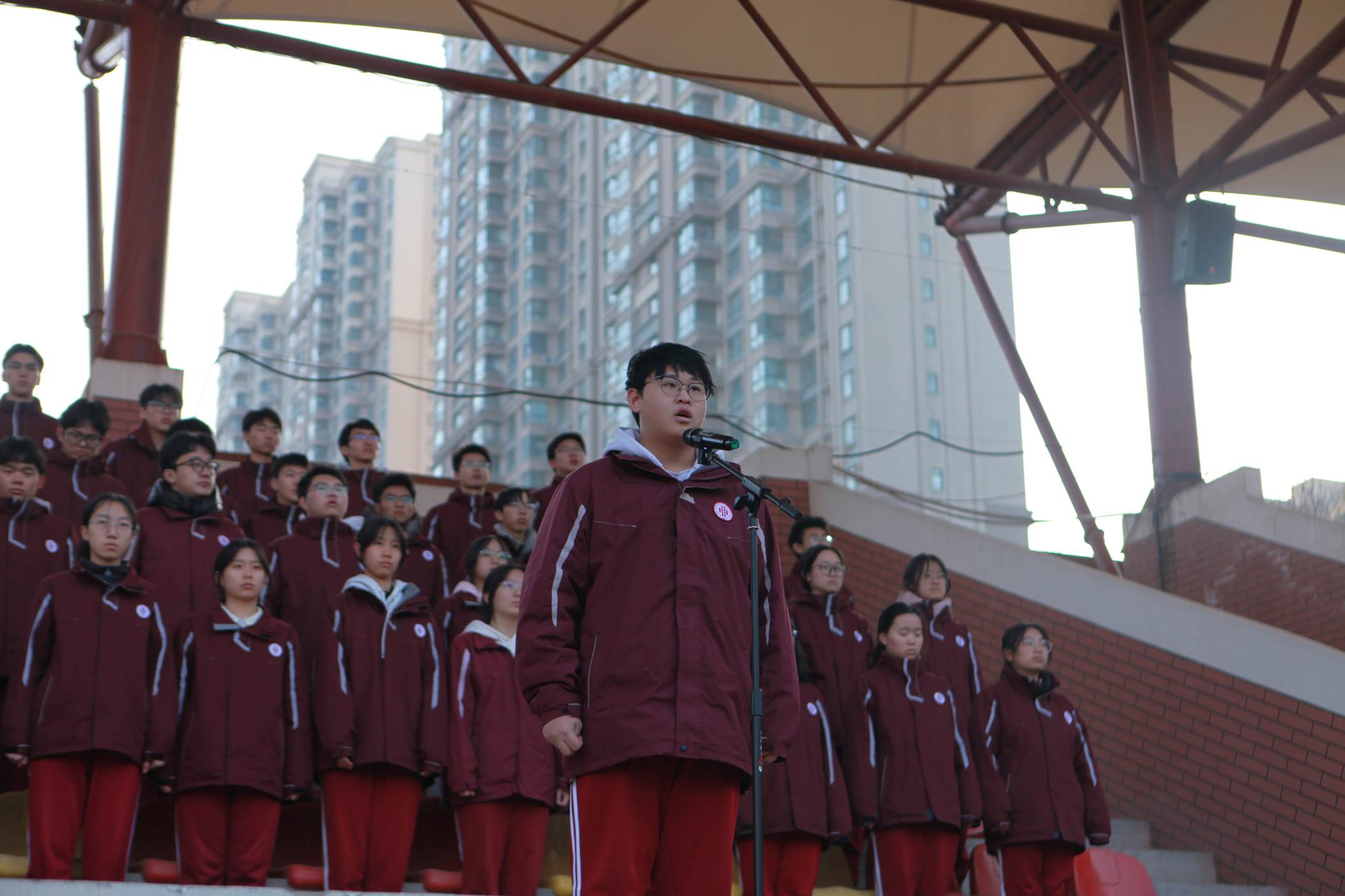 2026年1月5日上午,西安市曲江第一中学举行本学期第二十周升旗仪式,仪式由政教处副主任董锋主持。