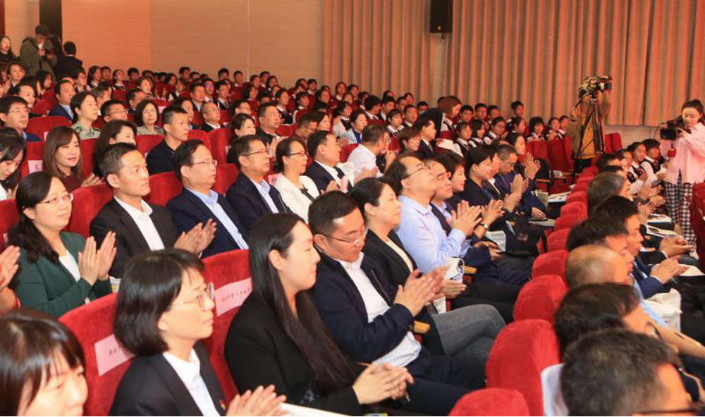 春播桃李三千圃,秋来硕果满神州。庆祝大会上,身处全国和世界各地的校友通过视频送上了对母校的深深祝福。老中青三代十位教师用饱含深情的诗朗诵讲述了自己和曲江一中的光阴故事。曲江一中家长代表向在学校工作十年、与学校共同成长的十位教师代表颁发了“十年芳华·不忘初心”筑梦奖荣誉奖牌,学生代表向老师们送上了祝福的花束,感谢他们为学校发展和学生成长所做的突出贡献。