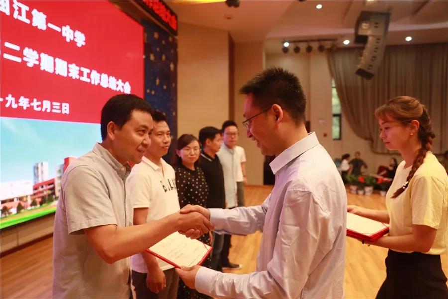 大会对2018-2019学年优秀共产党员,曲江一中第五届说课比赛获奖教师,校级、区级、市级先进班集体,校级优秀班主任以及第八届主题班会课赛教获奖教师,2018—2019学年优秀班主任学徒进行了表彰,边校长、陈校长为获奖教师颁奖。