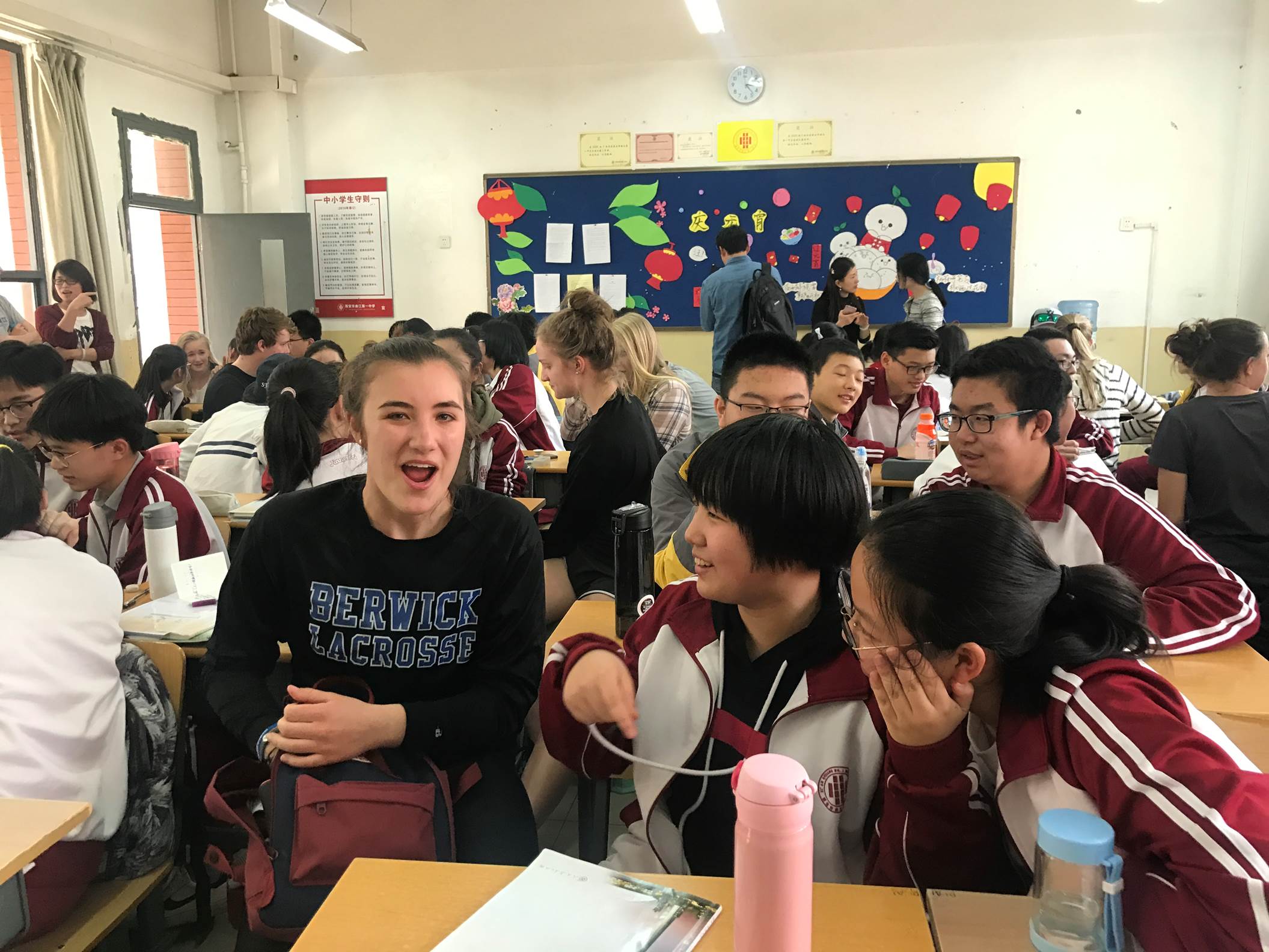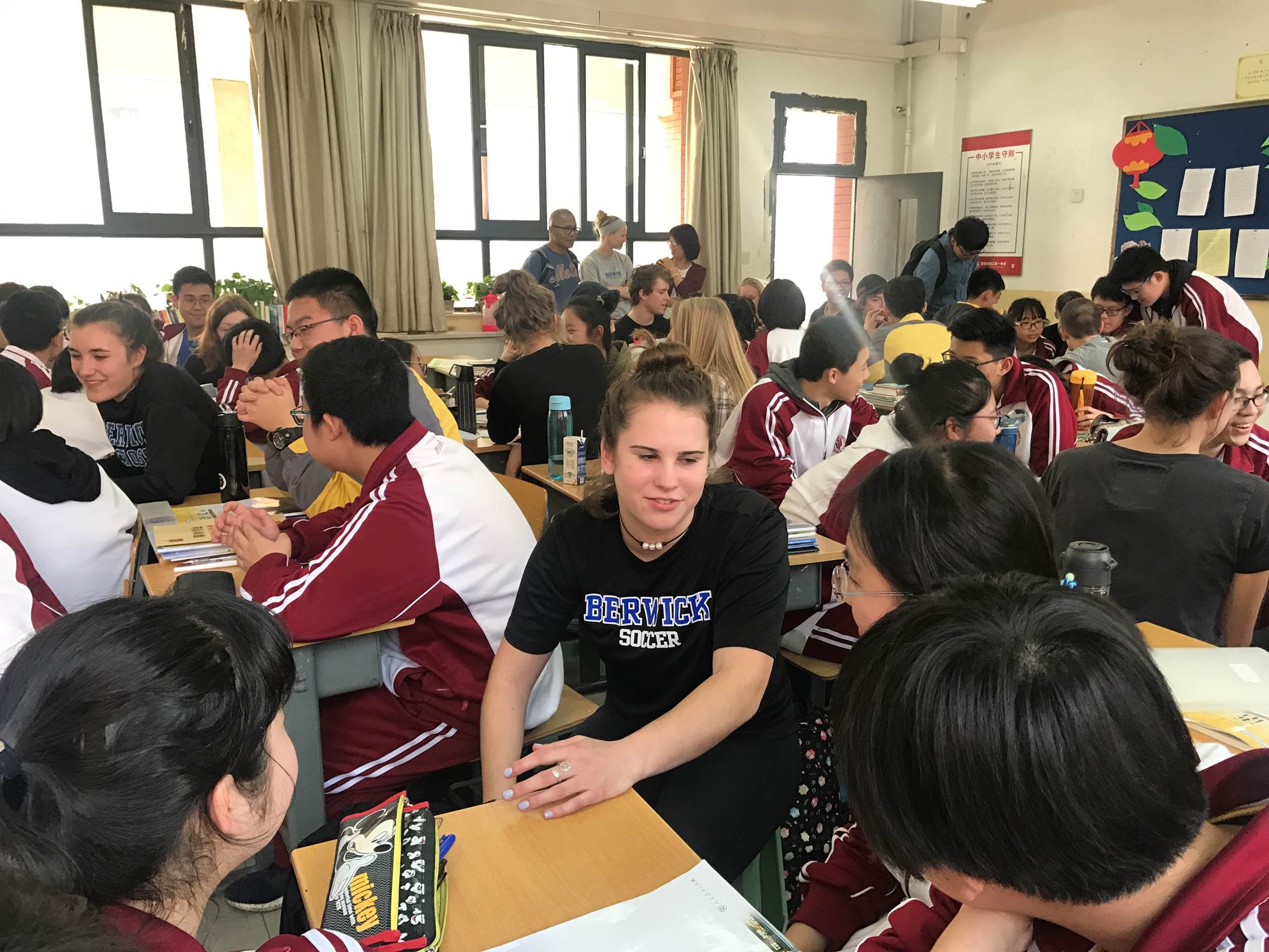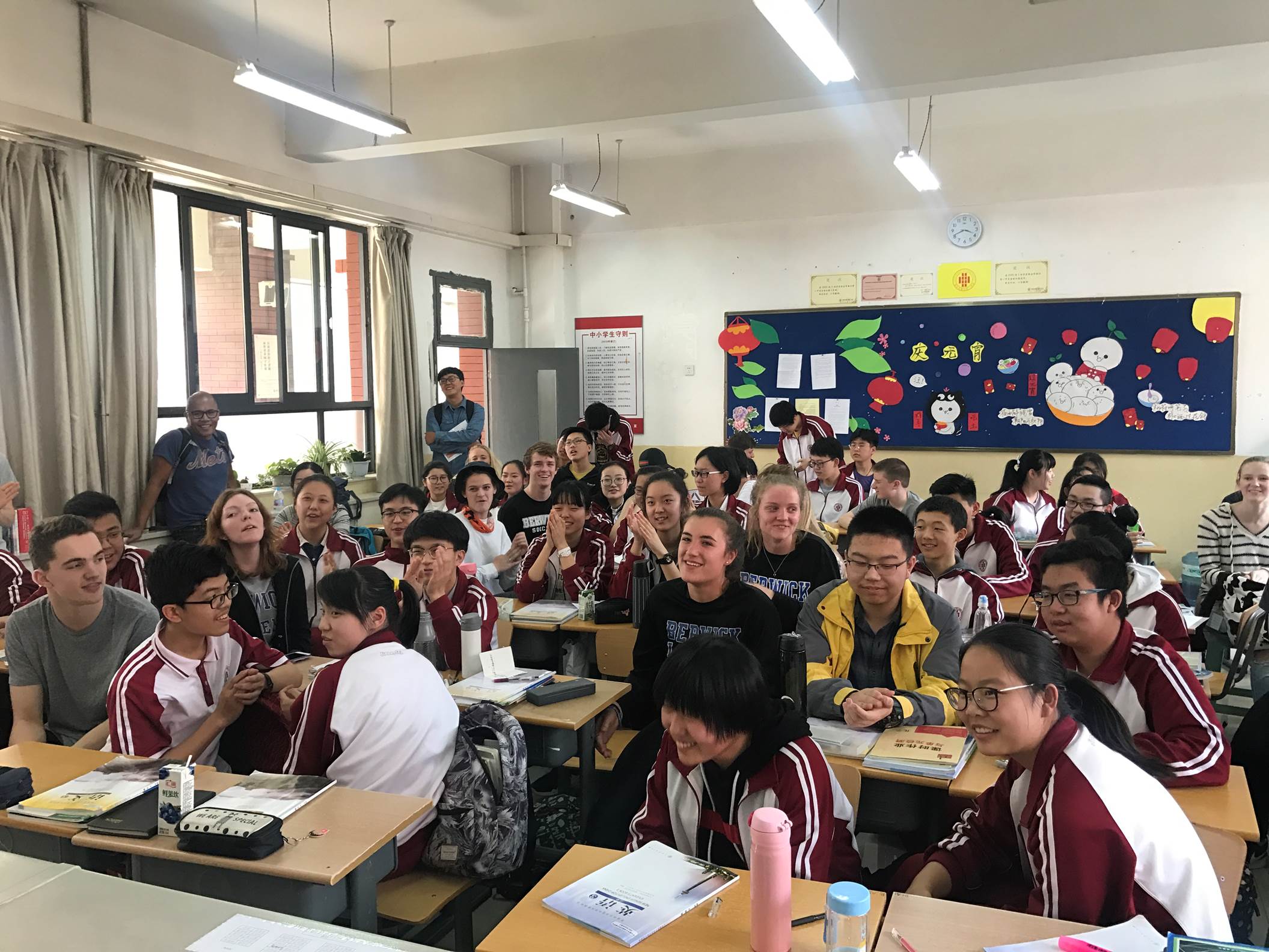 随后,学生们走进了樊青老师的英语课堂,与高一五班的学生进行了中英热点问题交流,大家就各自感兴趣的艺术、电影、美食等话题进行了充分讨论互动,并且互留微信,互赠礼物,一场跨越千山万水的友谊就在此刻缔结,青春真好,友谊最美。