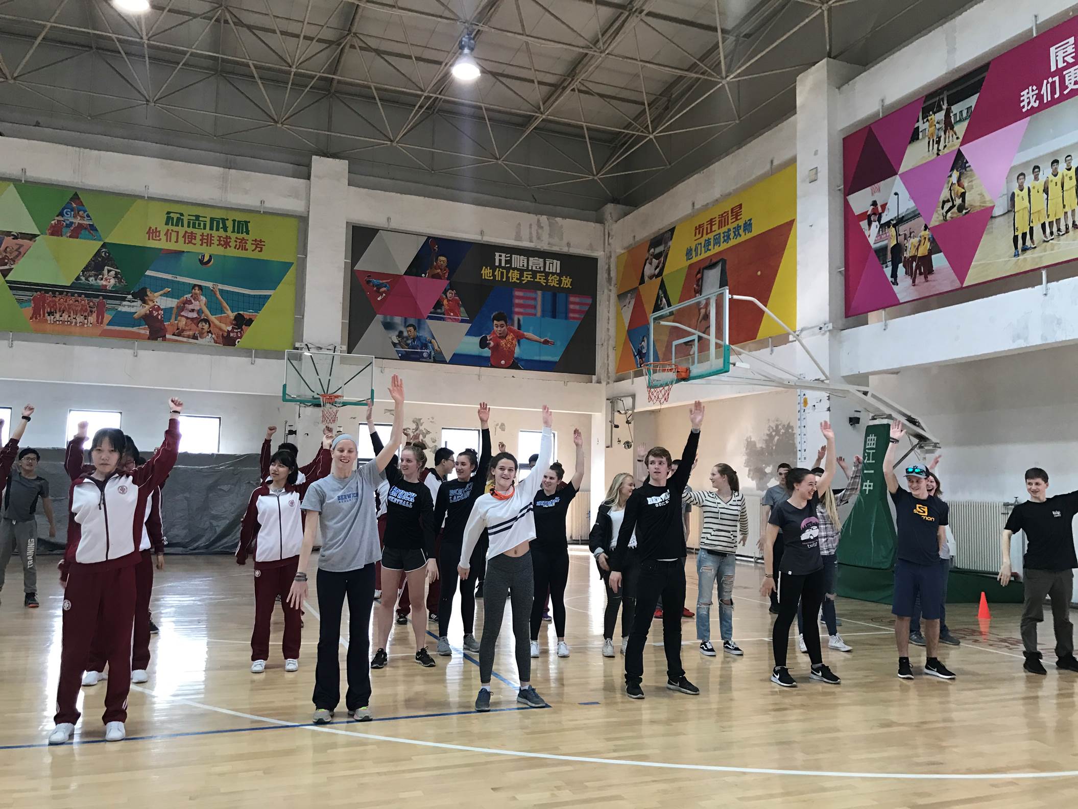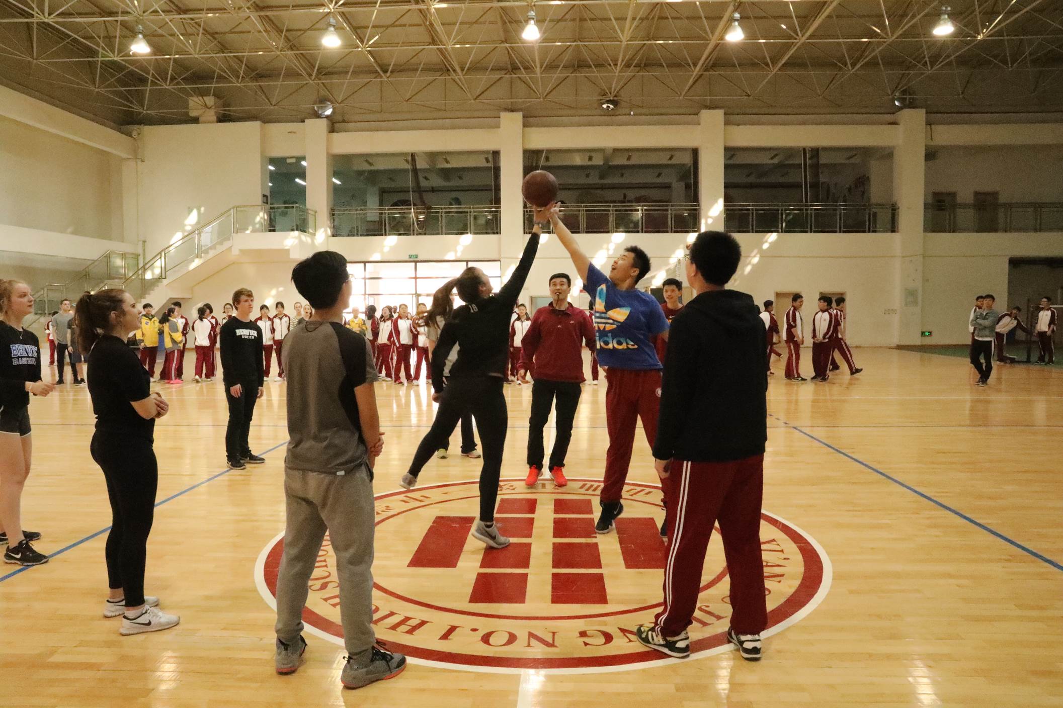 随后,在学校体育馆,中美学生篮球赛火热上演,双方代表对分别为Berwick Academy和曲江一中三班篮球队,比赛坚持以“以球会友,友谊第一”为宗旨,采用四节制赛制。赛前,双方队员进行简单的热身,尽管同学们首次见面,但丝毫不影响交流的热情。随着裁判员林刚老师嘹亮哨声的响起,双方很快投入比赛,双方队员们雄姿英发,你争我夺,以闪电般的速度,准确的投篮,犀利的突破,花式的动作,一次又一次地引爆了现场的气氛,全场的欢呼声和掌声不断。