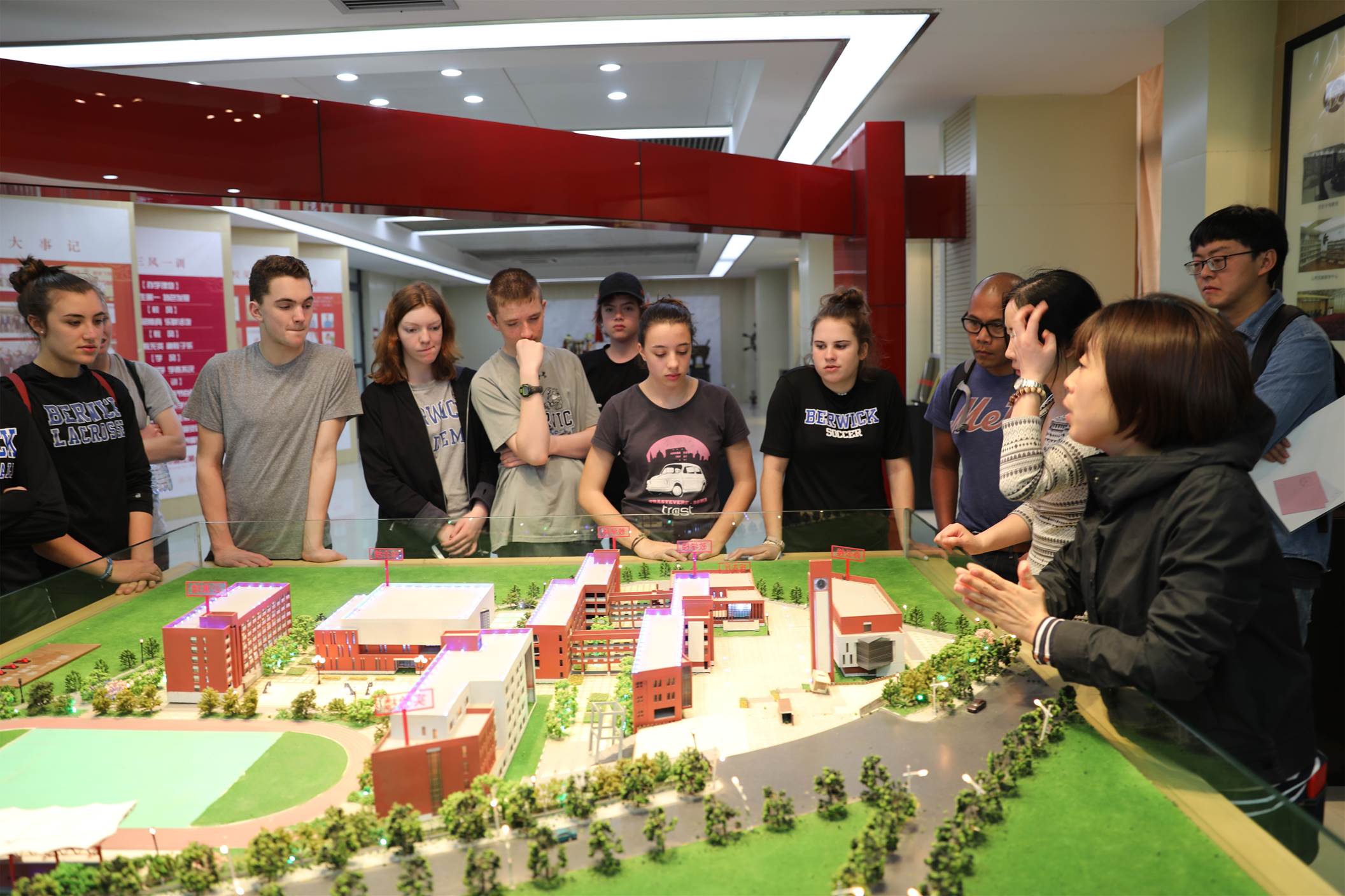 学校外事干事孙晓珍老师带领美国师生参观学校校展室