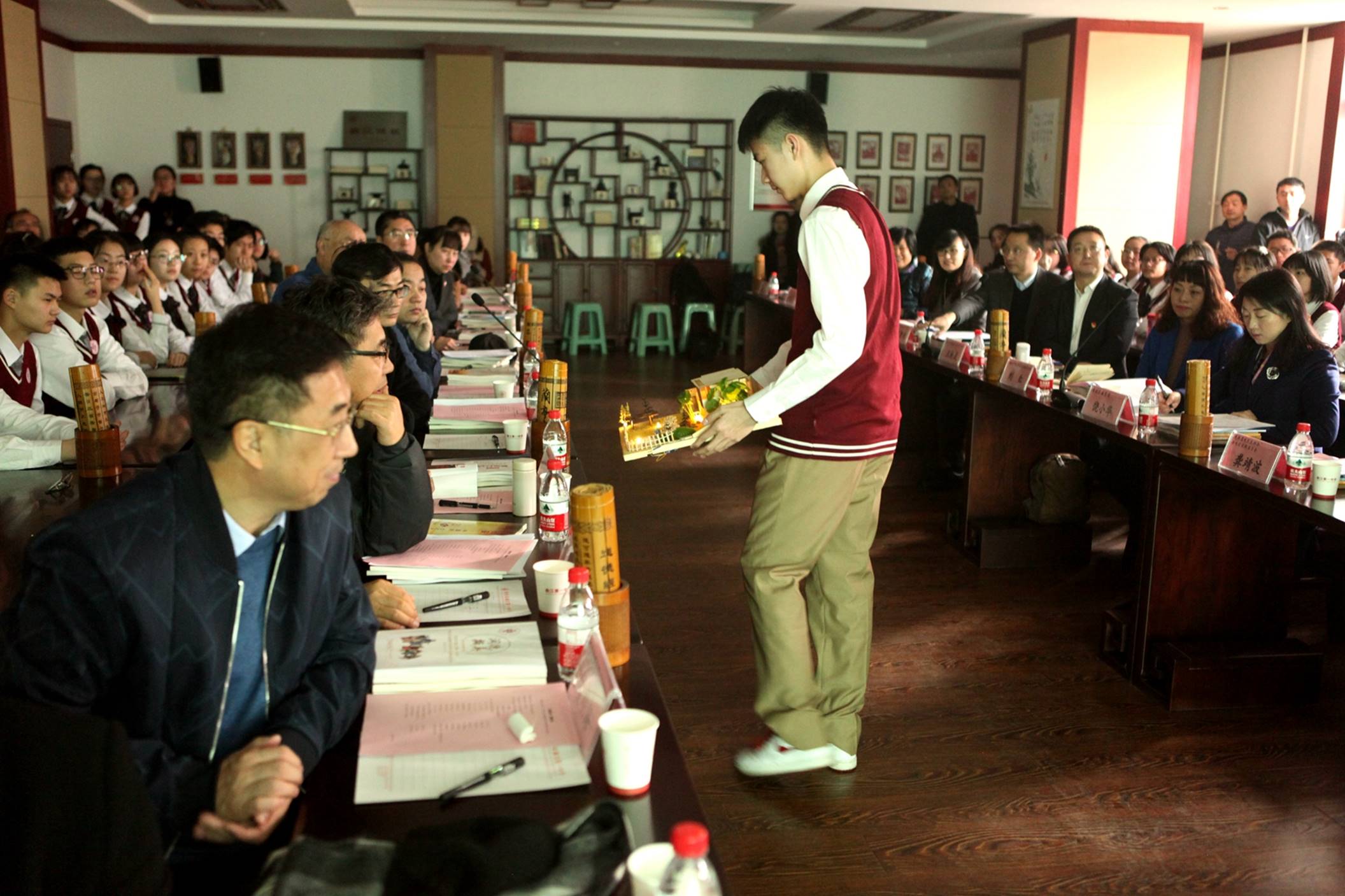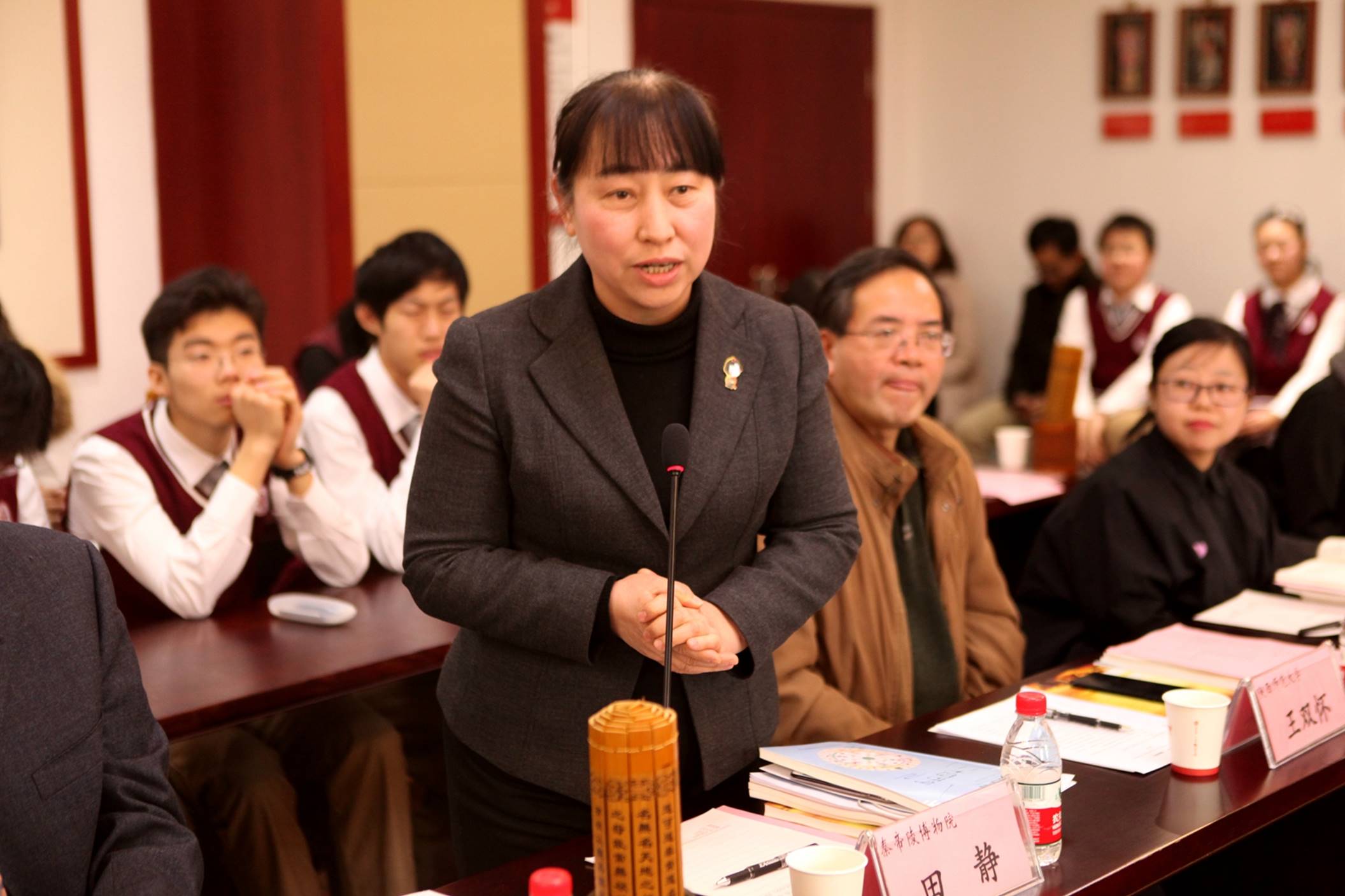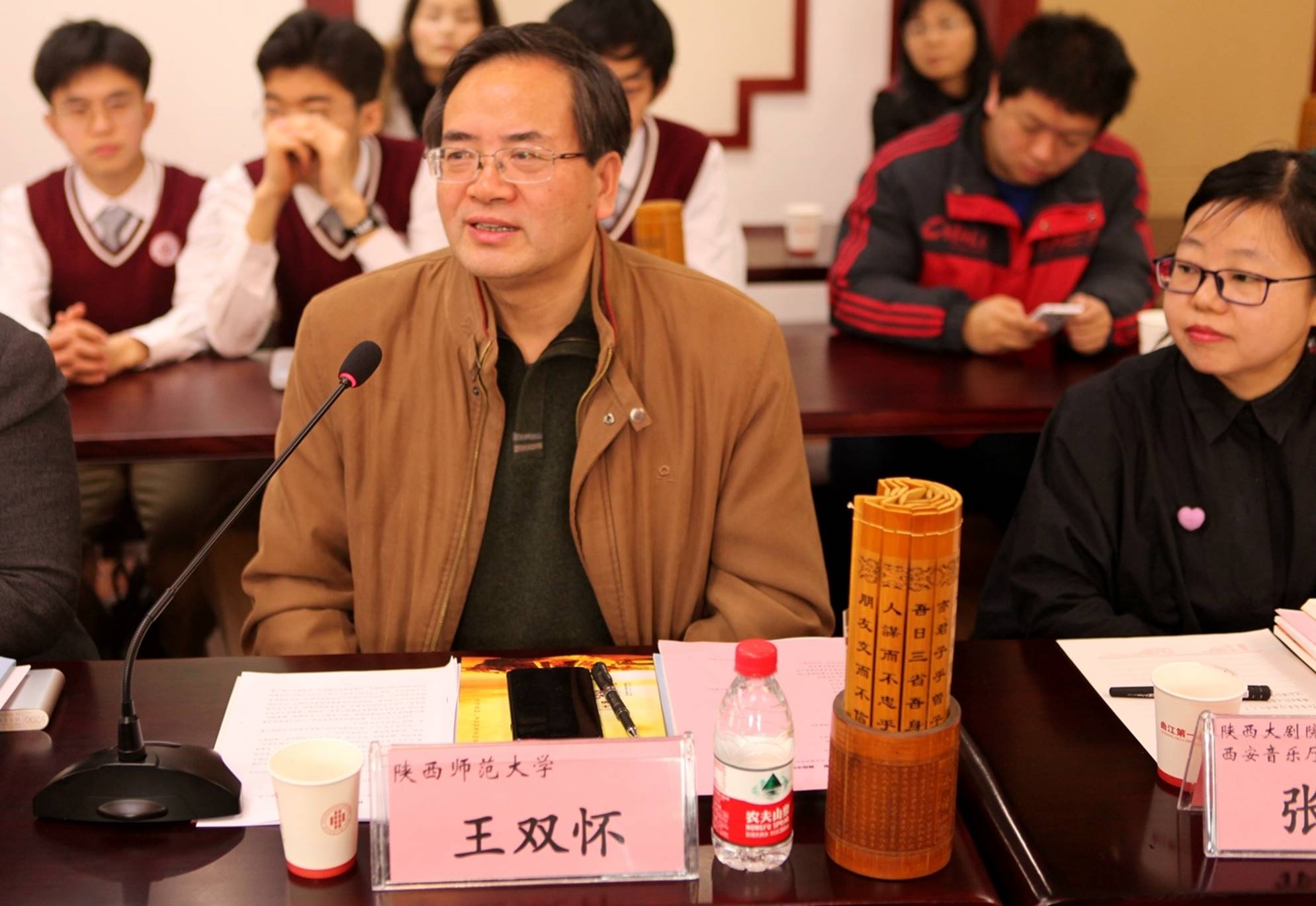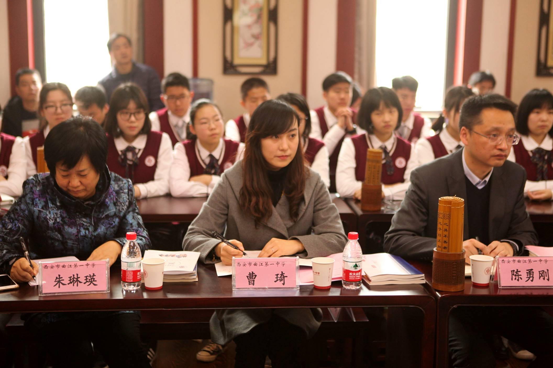 2018年1月20日,来自航空航天、建筑学、考古学、历史学、影视传媒等各领域的十余位专家、学者以及省市区教育主管部门的领导齐聚西安市曲江第一中学诚明轩,就学校的学科大讲堂和研究性学习开展情况进行了专题研讨。曲江一中师生代表和媒体记者共同参与了研讨活动。本次研讨活动由学校教研室副主任罗红梅主持。