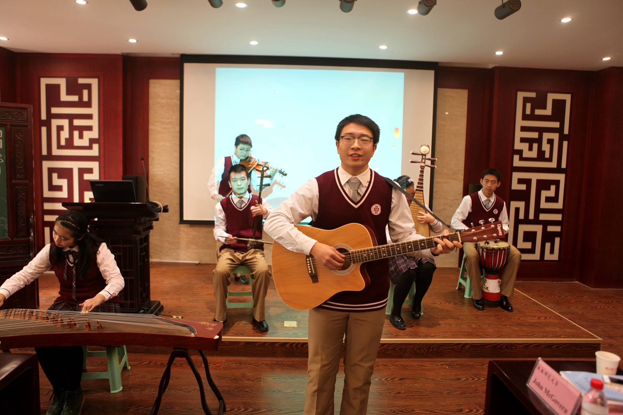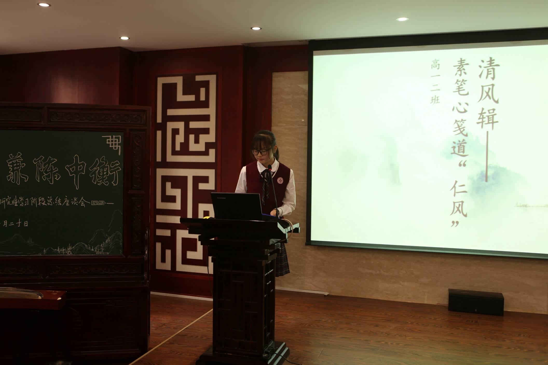 研讨会上,曲江一中常务副校长陈勇刚首先代表学校向参加此次活动的各位专家表达了热烈的欢迎。随后,陈校长介绍了学校学科大讲堂和研究性学习活动开展的背景、实施现状及收获。研讨会第二环节是学生互动,部分学生及家长通过视频和现场访问谈了对参与学科大讲堂活动的心得和体会,活动现场高一年级三组研究性学习《源溯》、《雅韵仁风》、《中西乐器合璧演奏》成果汇报展示将研讨会的气氛推向了高潮。学生的研究成果充分展现了他们的创新精神和研究能力,也展现了学生立足生活、关注社会的公民意识,同时更体现了学校“根植传统育中国灵魂,面向国际聚世界眼光”的办学特色。