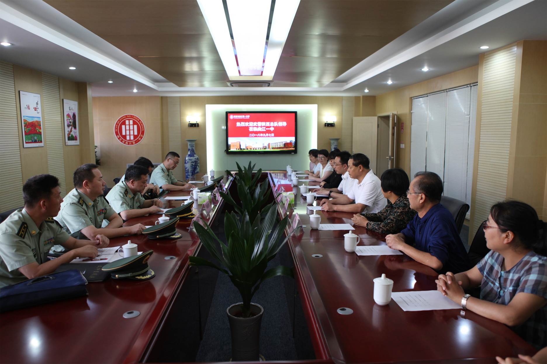 双方在行政楼二楼会议室进行了亲切的沟通和交流,会议由常务副校长陈勇刚主持。陈校长首先代表曲江一中全体教职工对武警陕西总队领导的到来表示感谢,随后介绍了曲江一中的基本情况和发展历程。