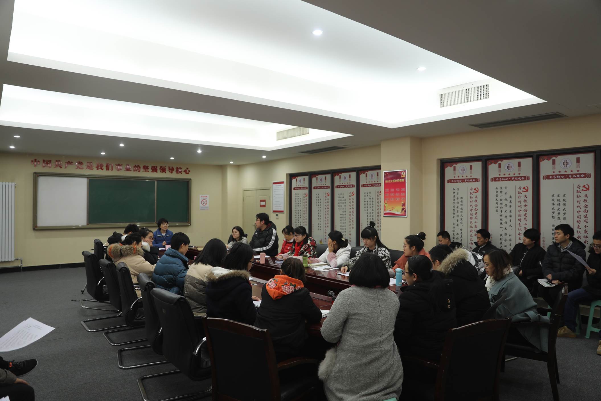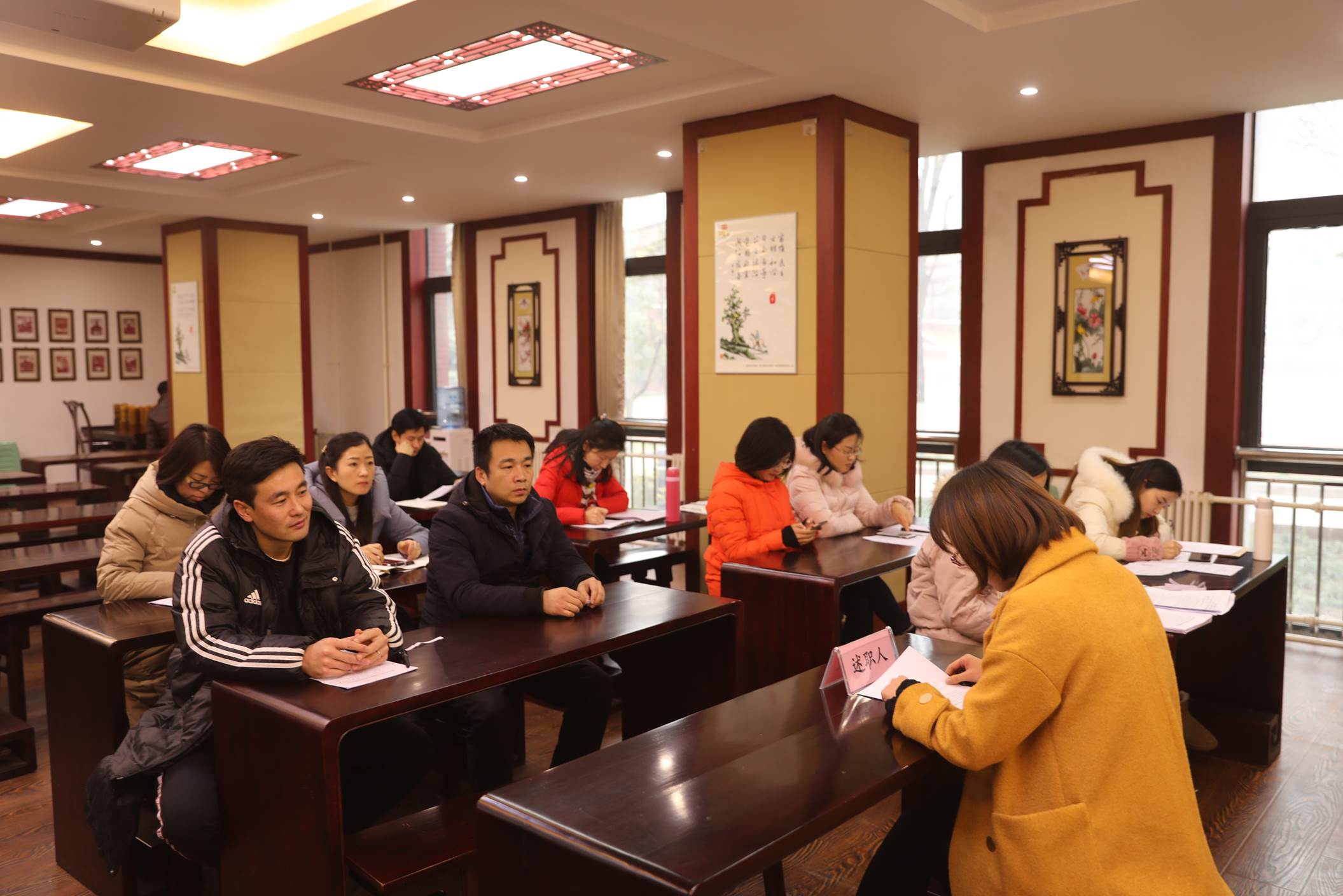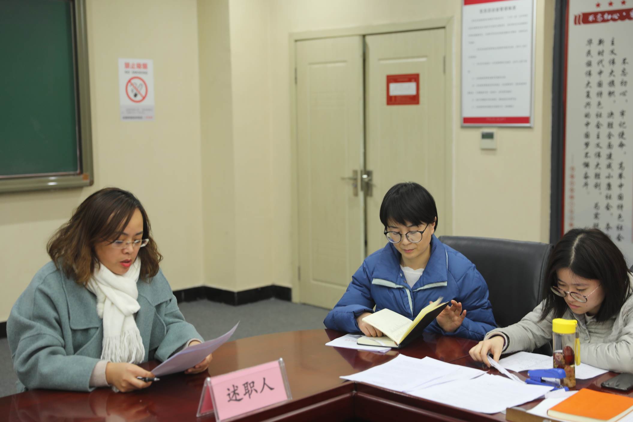 接下来,全体教职工以年级组为单位进行年终述职。我校教职工本着实事求是的原则,多角度、多方面地总结、评价并反思了自己一年的工作情况。客观总结了工作中获得的成绩和经验,认真分析了工作中存在的不足和问题,发现原因并制定2019年的工作计划和措施。参会教职工认真聆听,仔细记录,真正做到在总结中交流,在反思中提高。