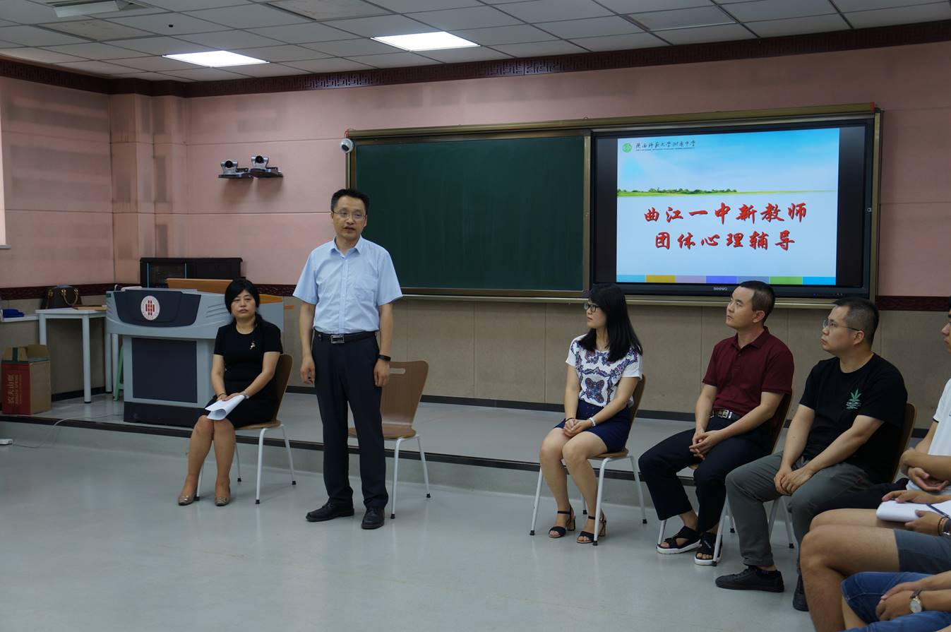 2018年7月1日下午,西安市曲江第一中学特别邀请陕西师范大学附属中学心理老师岑坚为我校2018年新入职教职工做了题为“新心相印”的团体心理辅导活动,旨在促进新教师相互了解和信任,提高教师之间的团队协作与创新能力,增强教师团体的凝聚力,帮助新教师规划未来,从而更好地适应新学校、新生活。此次活动由校办公室和心理发展指导中心组织,学校办公室副主任申小娟老师和校办杜冬雁老师全程参加。